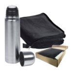 Перфектно дуо! Вашите клиенти ще имат всичко необходимо за една уютна вечер или пътуване с този хубав комплект. Ще получите красиво поларено одеяло 2 в 1, което може да се превърне във възглавница с помощта на прикрепения цип и термо колба с 500 ml съдържание.
