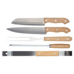 Комплект за барбекю, включващ голяма дървена дъска, два ножа с острие от неръждаема стомана, щипка за барбекю, вилица за месо и точило за ножове. Всичко това е опаковано в практичен полиестерен калъф с цип и дръжка за лесно пренасяне. Този комплект е перфектният избор за любителите на барбекю, като съчетава стил и функционалност за незабравими моменти на открито.