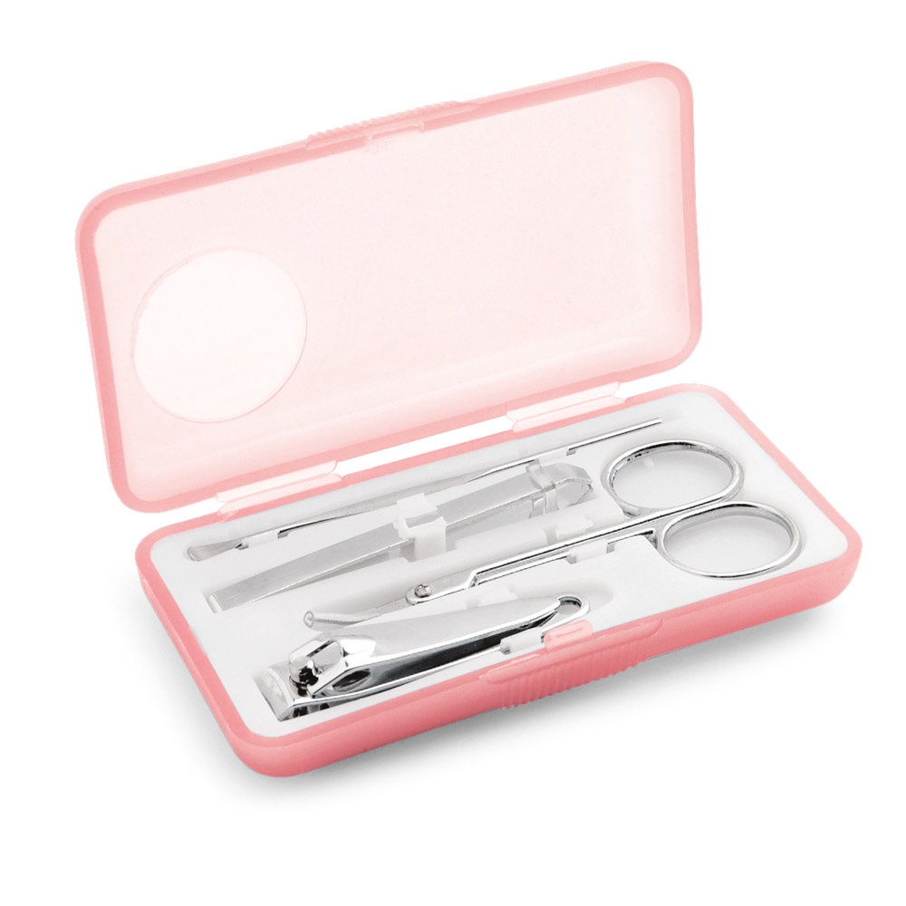 Комплект за маникюр включващ четири висококачествени инструмента от неръждаема стомана – ножица, нокторезачка, пинсета и избутвач за кожички.