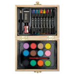 Мини комплект за художник в дървена кутия, който включва всичко необходимо за творчески проекти.