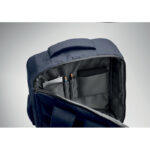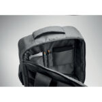 Тази тънка 15-инчова раница за лаптоп от 300D RPET предлага безопасно отваряне на 180 градуса за лесен достъп до вещите.