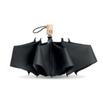 23-инчов 3-сгъваем чадър с автоматично отваряне/затваряне от 190T pongee RPET. Ребра от фибростъкло. Бамбукова дръжка с памучна каишка за китка. Включва подходяща RPET торбичка. Бамбукът е естествен продукт, възможно е да има леки вариации в цвета и размера на артикул, което може да повлияе на крайния резултат от декорацията.
