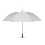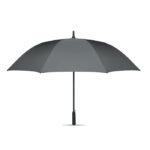 27-инчов автоматично отворен ветроустойчив чадър от 190T RPET понге. Вал и ребра от фибростъкло. Дръжка от житна слама и рециклиран ABS. Пластмасови накрайници и плот.
