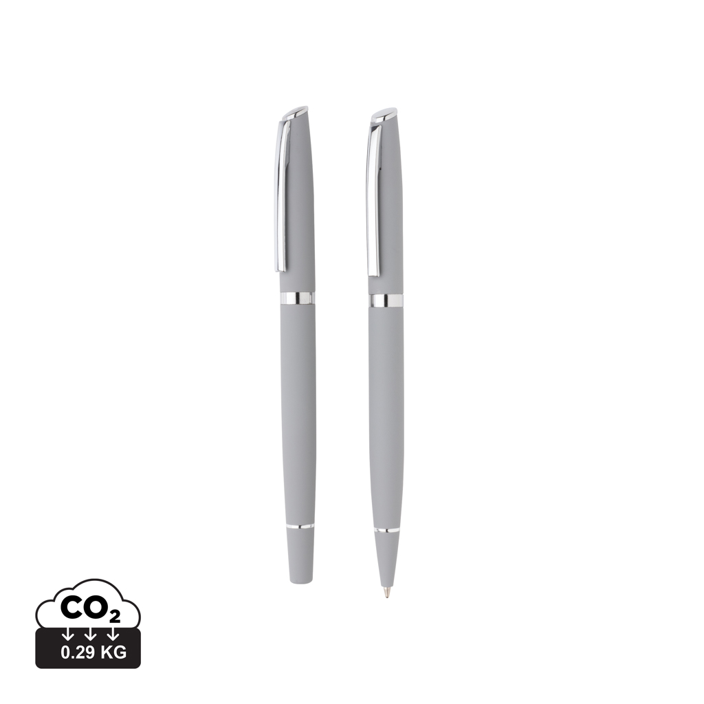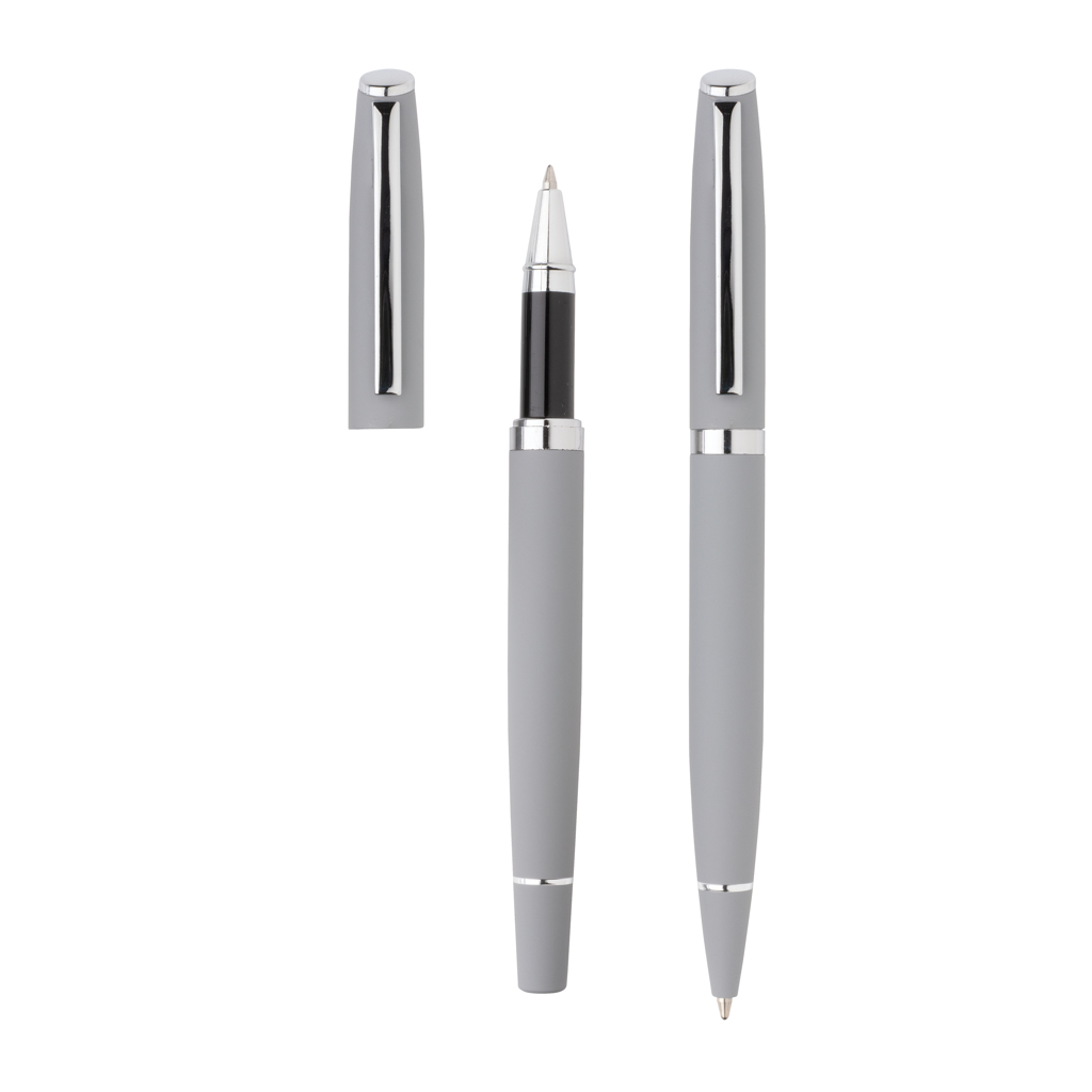 Просто, но елегантно. Благодарение на матовото покритие, този луксозен комплект химикалки има луксозно усещане и е много приятен на допир. Комплектът се състои от химикал и ролер. И двете химикалки съдържат немско мастило Dokumental® за изключително гладко писане. Дължината на писане за писалката е 1200 метра, за ролката 400 метра. Предлага се в подаръчна кутия в подходящ цвят.