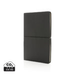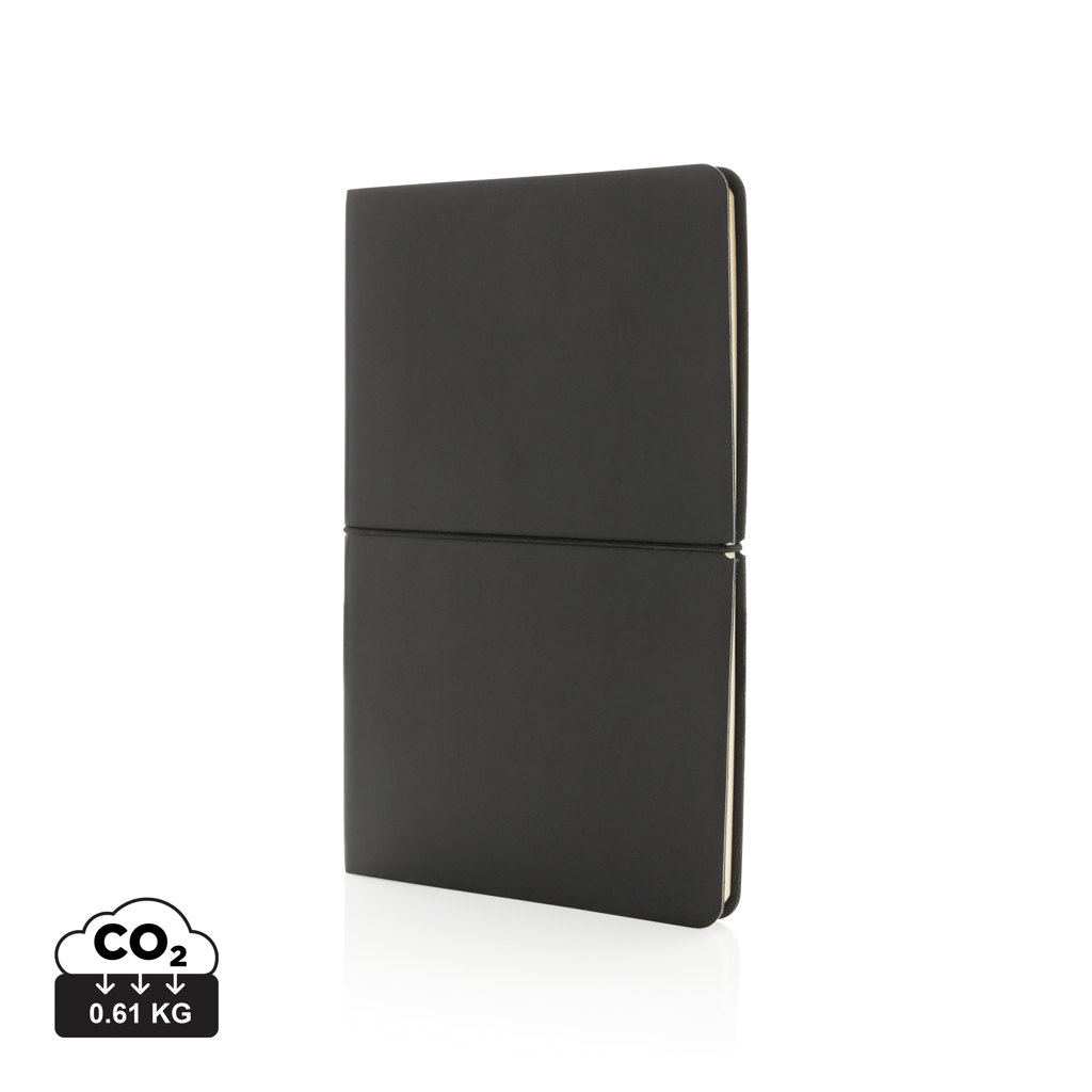 Този модерен луксозен тефтер A5 е толкова невероятно мек и луксозен и разполага с 96 листа и 192 страници, толкова много страници, за да напишете най-добрите идеи. Създаден с линирана хартия в кремав цвят 80 g/m². Страхотно важно за писане на задачи/напомняния и професионално водене на бележки по време на работни срещи. Меко издръжливо PU покритие с опростено черно еластично хоризонтално затваряне, което го прави страхотен за гледане. Неговата огъваща се корица го прави чудесно приложение като преносим дневник/тефтер за пътуване, идеален за движение.