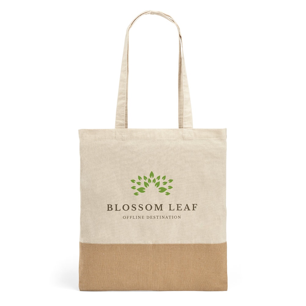 Торба от 100% памук с плътност 160 г/м², с имитиращ детайл от юта, който придава на чантата естествен и стилен вид.