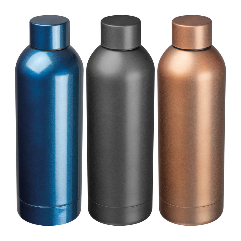 Двустенна вакуумна бутилка за пиене от неръждаема стомана с непропусклива капачка и вместимост 500 ml.