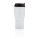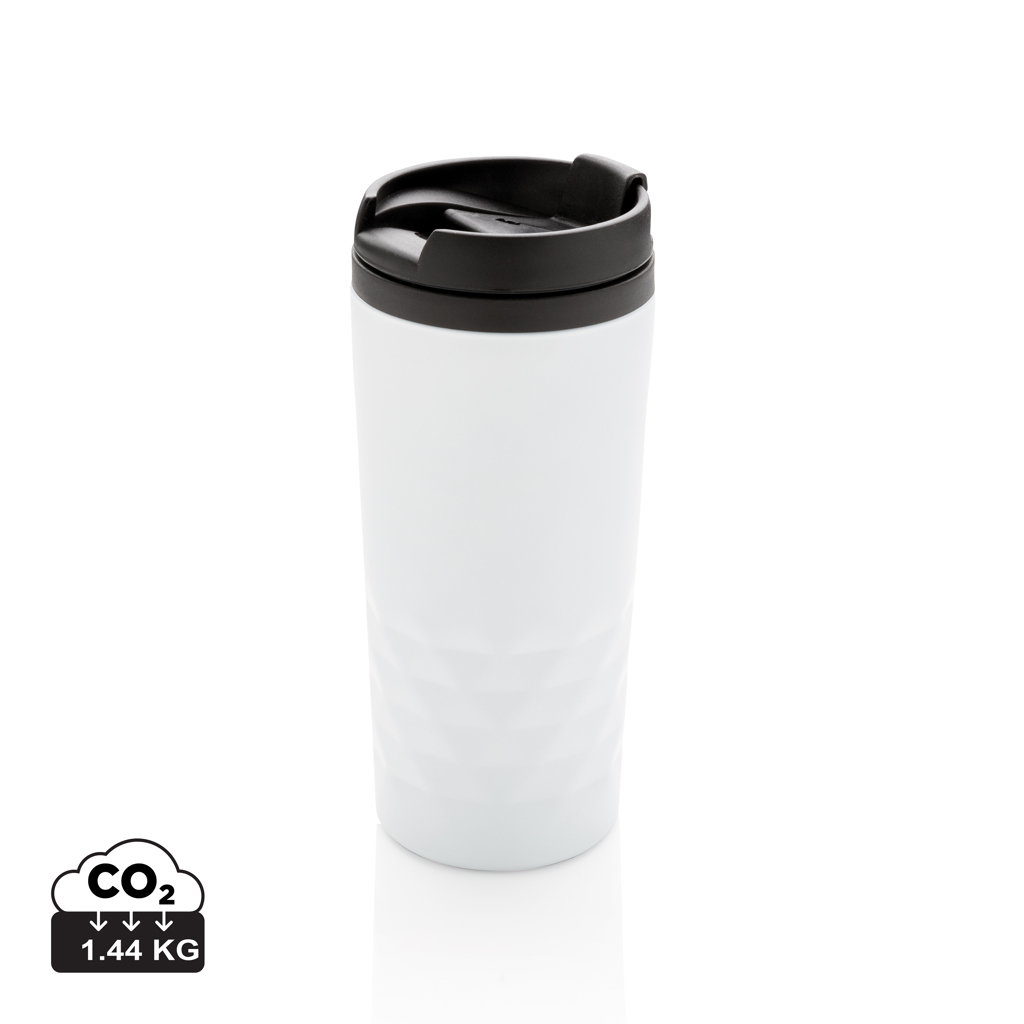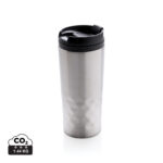 Модна чаша от неръждаема стомана с геометрични детайли. Вътрешното тяло е изработено от пластмаса. Само ръчно пране. Съдържание 300мл.