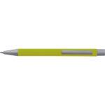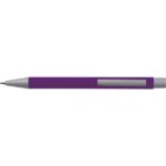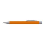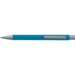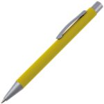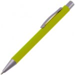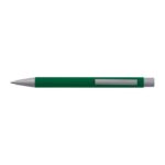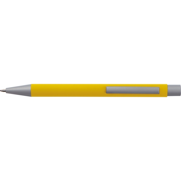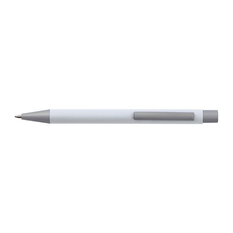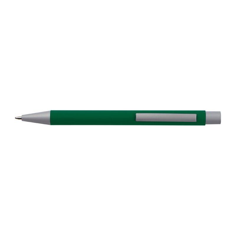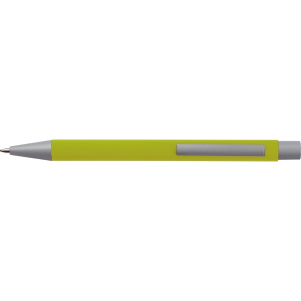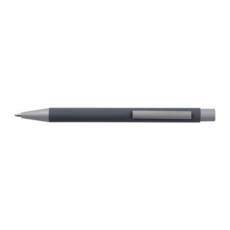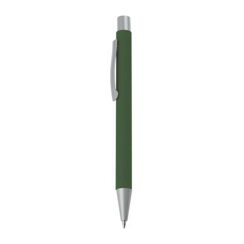 Гумирана метална химикалка в цветове по избор и син пълнител за писане.