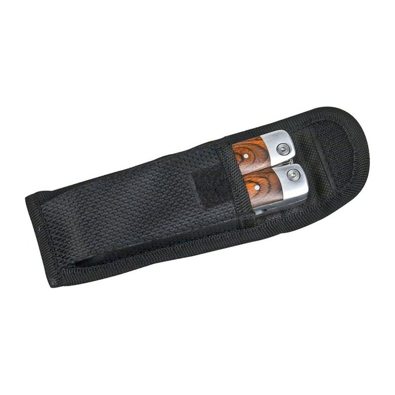 Този удобен многофункционален инструмент, изработен от висококачествена инструментална стомана (2CR), елегантно декориран с дървени дръжки, е практичен за всеки повод.