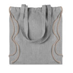 Двуцветна пазарска мешка от рециклиран памук и рециклиран полиестер с шнур и дълги дръжки, с плътност 140 г/м².