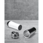 Термочаша за пътуване от неръждаема стомана и PP с въздушно изолирано двойно тяло, капак със система против разливане и неплъзгащ се в основата. Термочашата е с вместимост до 470 мл. Доставя се в подаръчна кутия. ø80 x 198 мм | Кутия: 82 х 202 х 82 мм