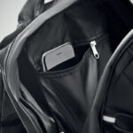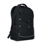 Раница от 600D RPET с тъмни шнурове отпред и отразяващ преден панел.