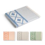 Многофункционална кърпа за баня с плътност 350 г/м², изработена от 85% памук и 15% рециклиран памук.