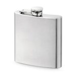 Джобна бутилка от неръждаема стомана с вместимост до 180 мл. Доставя се в кутия. 100 x 110 x 25 мм