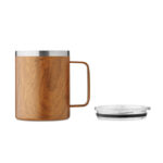 Чаша с двойна стена от рециклирана неръждаема стомана (90% рециклирана неръждаема и 10% неръждаема стомана) с дървен вид и плъзгащо се капаче на отвора за глътка. Вместимост: 300 мл.