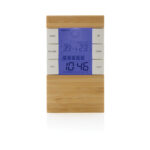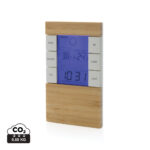 Метеорологична станция, направена с RCS (Recycled Claim Standard) сертифициран рециклиран ABS и FSC® 100% бамбук. Общо рециклирано съдържание: 42% на базата на общото тегло на артикула. RCS сертификацията гарантира напълно сертифицирана верига за доставки на рециклирани материали. С LCD екран. Функции: температура, влажност, време, ден от седмицата, дата, температура. Включително aaa батерии за директна употреба. Опаковани в смесена крафт кутия FSC®.