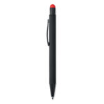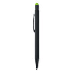 Стилус химикалка с бутон от алуминий. Когато логото е гравирано върху цевта, разкритият цвят съвпада с цвета на сензорния накрайник. Синьо мастило.