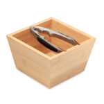 Комплект трошачки за ядки с бамбукова купа и крекер за ядки в сребрист цвят от цинкова сплав с TPR дръжка. Бамбукът е естествен продукт, възможно е да има леки вариации в цвета и размера на артикул, което може да повлияе на крайния резултат от декорацията.