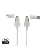 Винаги зареждайте с възможно най-бързата скорост на зареждане с кабела за бързо зареждане Oakland. Изработен от сертифицирани рециклирани материали. Калъфът е направен от 100% сертифицирана по RCS рециклирана TPE пластмаса, а жицата от 100% рециклиран TPE вътрешен материал и 100% рециклиран PET външен слой. RCS (Recycled Claim Standard) е стандарт за проверка на рециклираното съдържание на продукт по цялата верига на доставки. RCS е стандартът, който се използва, когато част от артикула е направена от рециклирани материали. Кабелът от 120 cm има 5 различни конектора: USB C in, USB A in, type C out, IOS out и micro USB out. Това също ви позволява да използвате кабела с изходни устройства тип C, които са включени в по-новото поколение телефони и компютри macbook. Кабелът също има опция за USB A изходен вход, така че може да зарежда всяко устройство от всеки изходен източник. Максимален ток тип C до мълния 18W. Максимален ток тип C до тип C 45W. Артикулите Urban Vitamin са произведени без PVC и опаковани в пластмасови умалени опаковки.