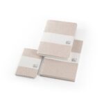Тефтер A5 с полутвърда корица, изработена от органична слонска материя. Вътрешната хартия е изработена от памучни отпадъци и е изключително издръжлива. Съдържа 100 линирани страници и хартиена лента с рисунка. В процеса на производство на този бележник не са генерирани отпадъци, нито са използвани химикали или дървета.