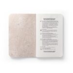 Тефтер А6 с гъвкава корица, изработена от органична слонска материя. Вътрешната хартия е изработена от памучни отпадъци и е изключително издръжлива. Съдържа 52 обикновени страници и хартиена лента с рисунка. В процеса на производство на този тефтер не са генерирани отпадъци, нито са използвани химикали или дървета. 100 x 145 мм