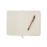 А5 корково портфолио. Тефтер А5 за многократно пълнене с твърда коркова корица. Обвързан с каса. 192 страници с рециклирана хартия (96 листа). Подходяща химикалка и държач за химикал. 2 поставки за карти и едно голямо отделение. Еластична лента за затваряне.