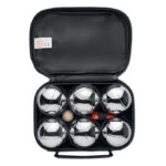 Boules в метален комплект, доставен в 600D полиестерна торбичка. Тегло на 1 топка 730гр и диаметър 7,3см.
