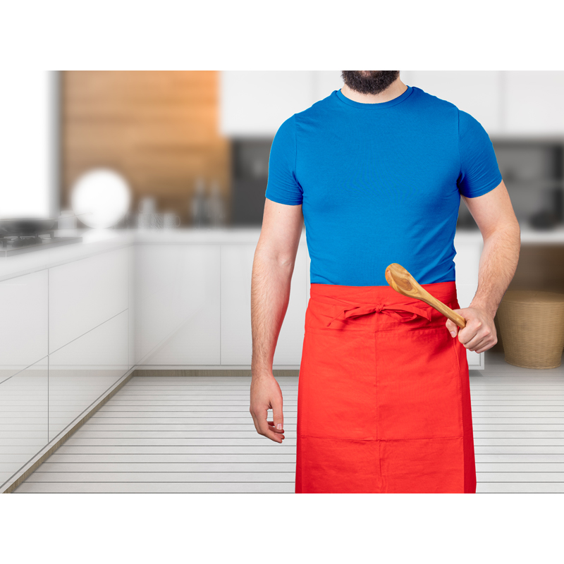 Готварска престилка, изработена от висококачествен памук OEKO-TEX 160 g/m², осигуряваща комфорт и издръжливост.