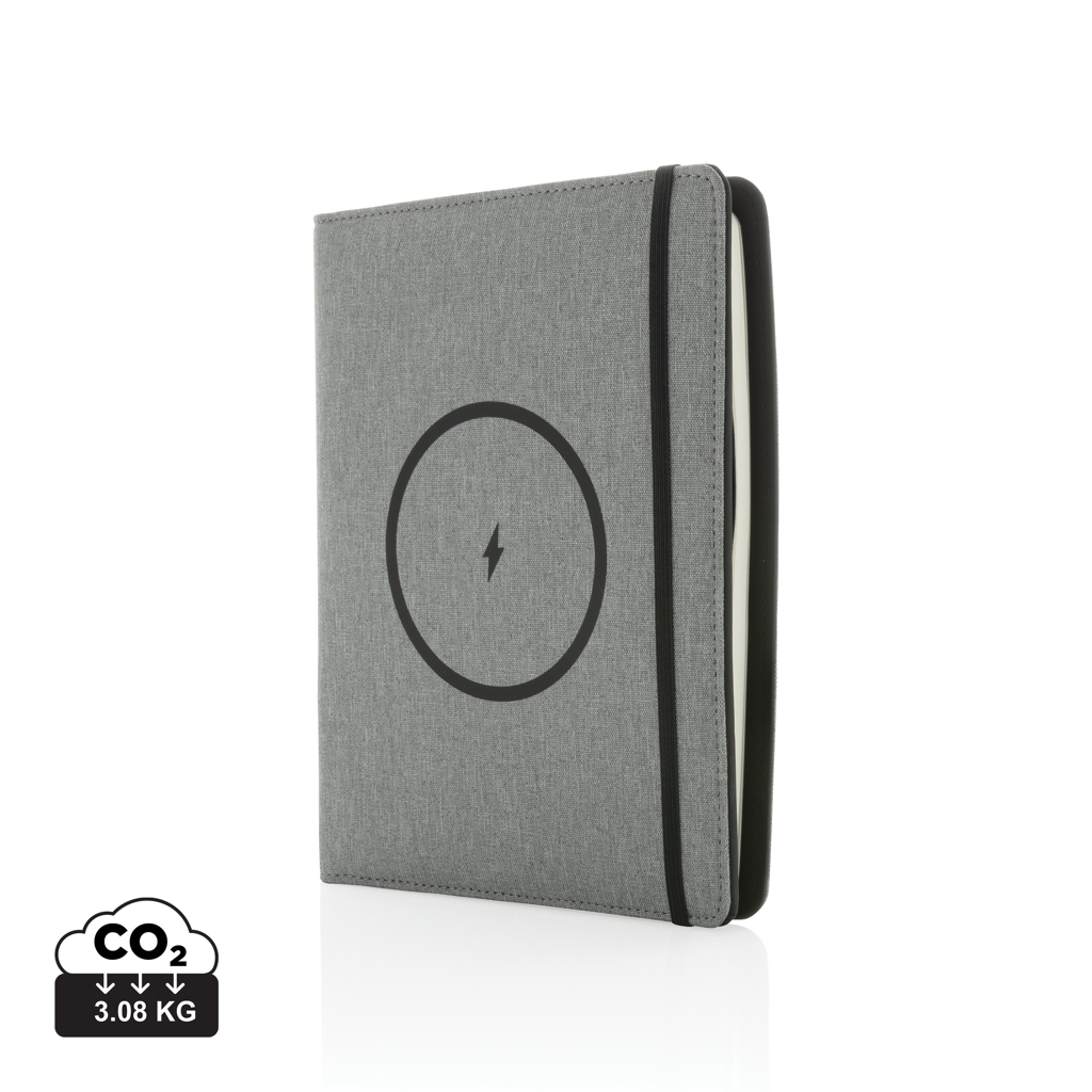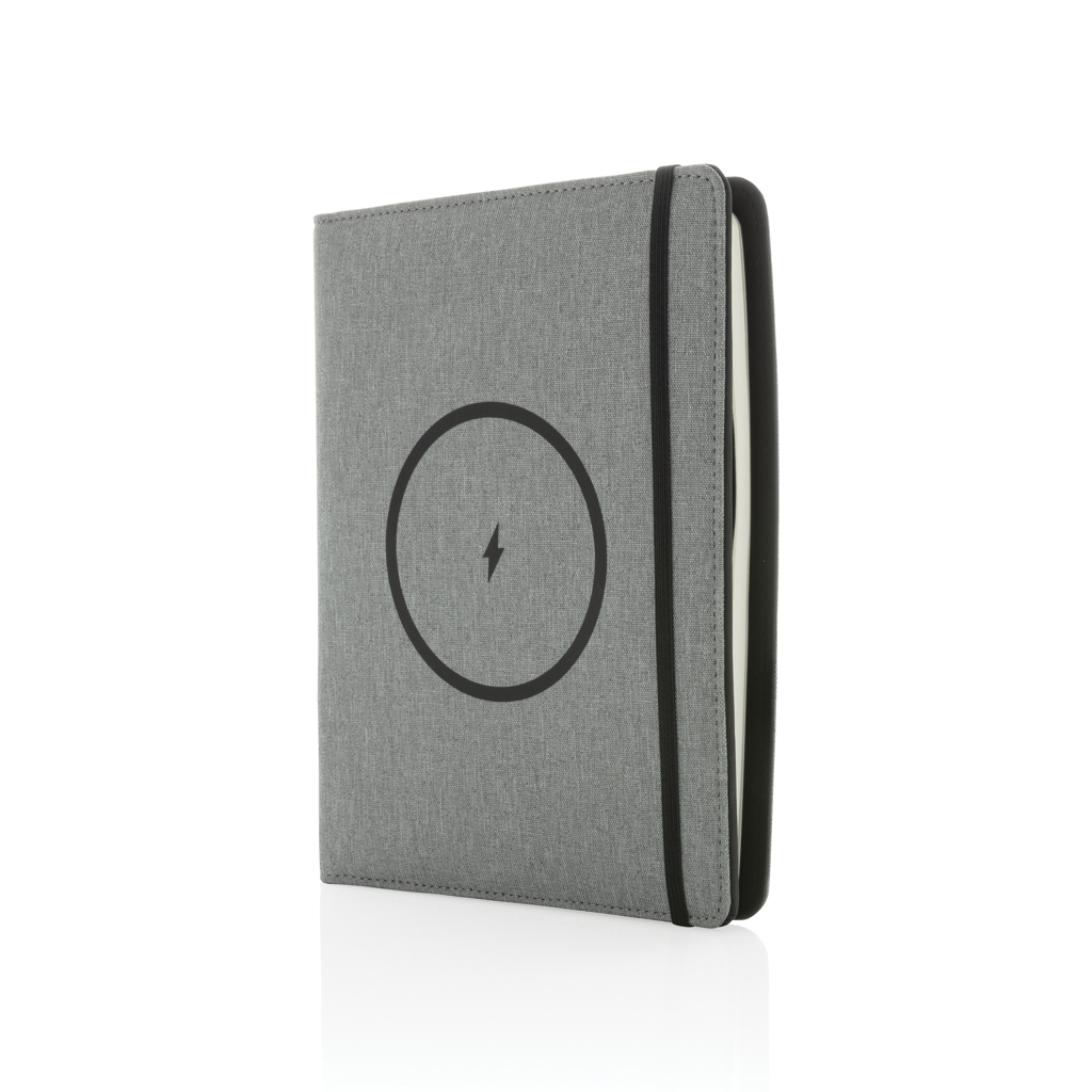 Тази папка-органайзър ви позволява да провеждате срещите си със стил. Предният капак има подложка за безжично зареждане за вашия смартфон. (Android най-нови поколения, iPhone 8 и по-нови). По-старите телефони и таблети могат да се зареждат през USB портовете с външна 5000 mAh външна батерия. Вход: 5.0V/2.1A. Изход 1: 5.0V/2.1A. Изход 2: 5,0 V/2,1 A. Безжичен изход: 5 W. Регистриран дизайн®