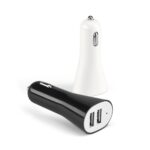 USB адаптер за кола от ABS с 2 изхода 5V/1-2’1A. Подходящ за зареждане на мобилни устройства. 37 x 80 x 26 мм