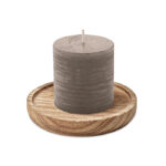Дървена декоративна основа с кръгла форма и свещ с аромат на ванилия.