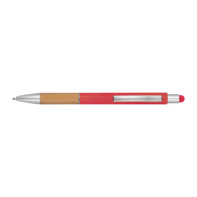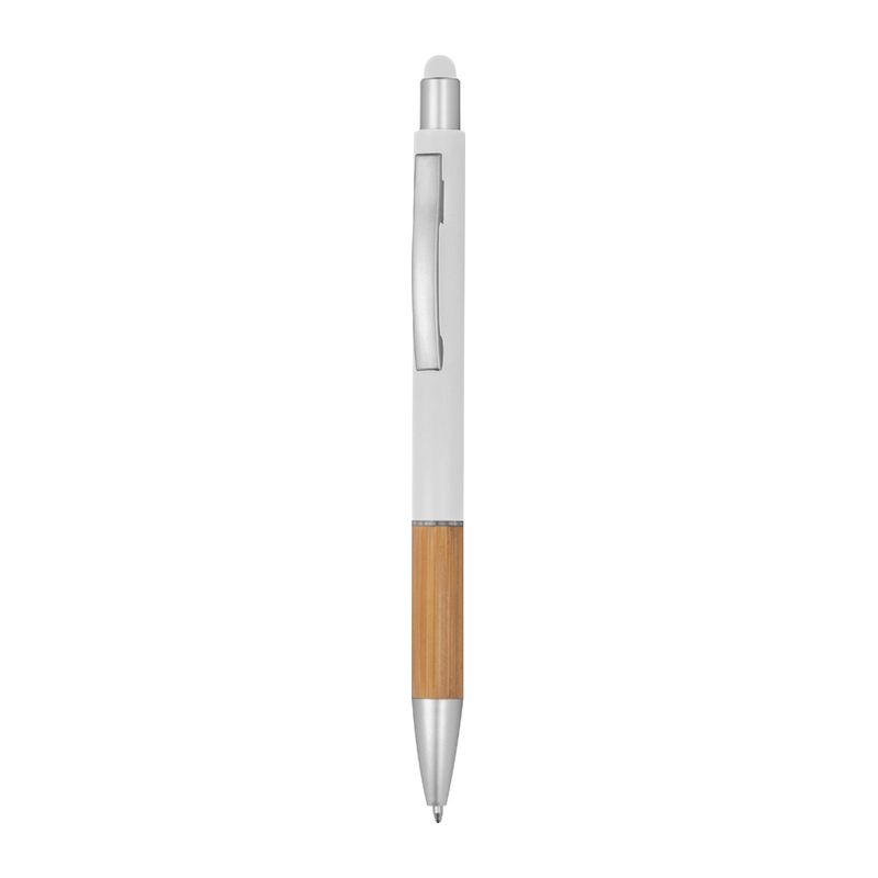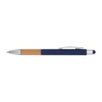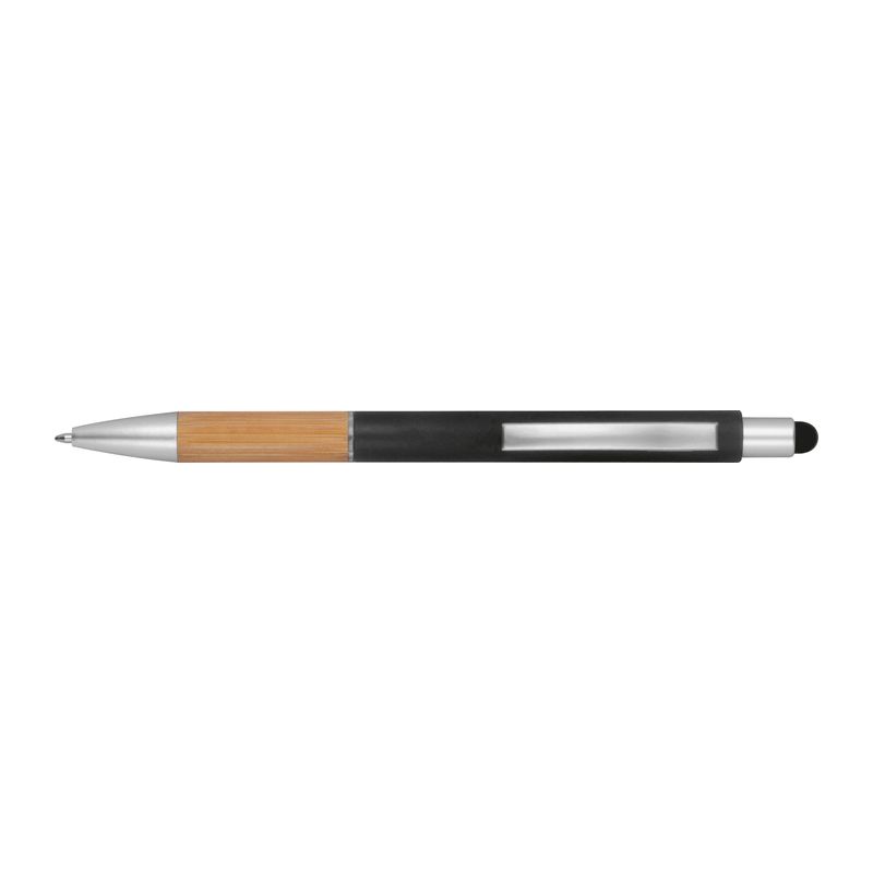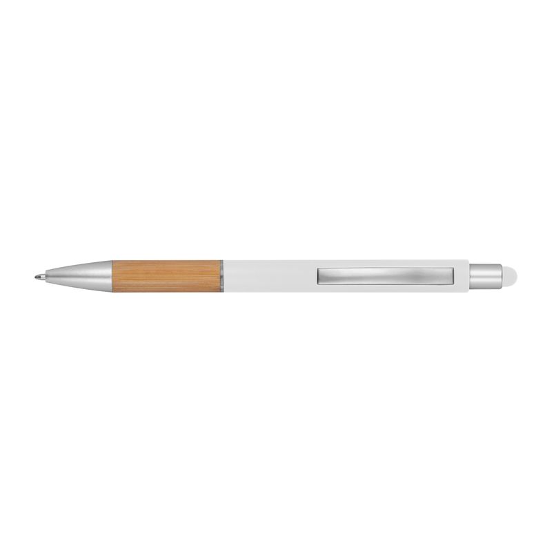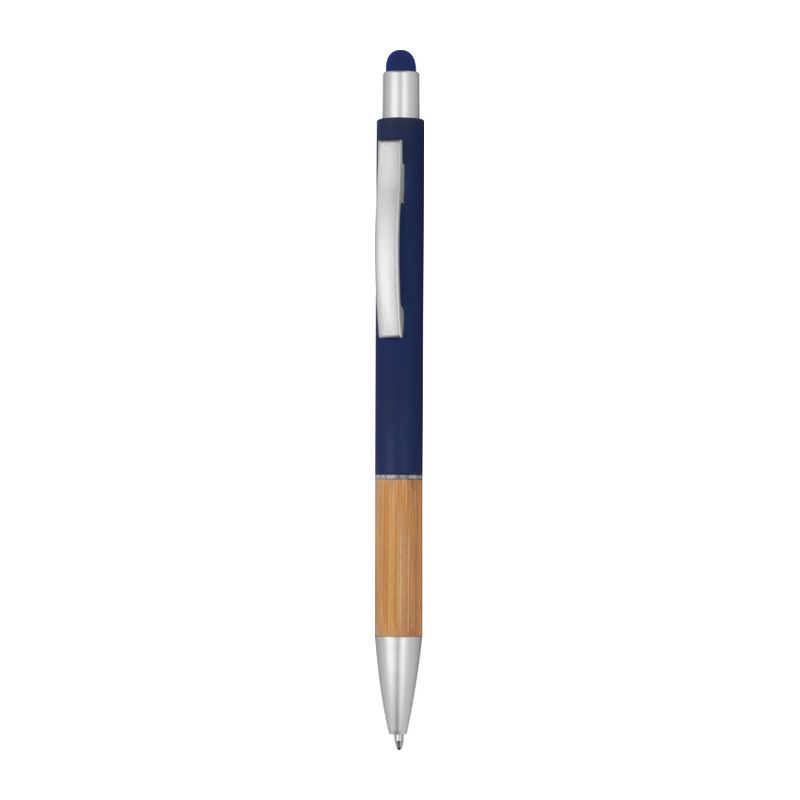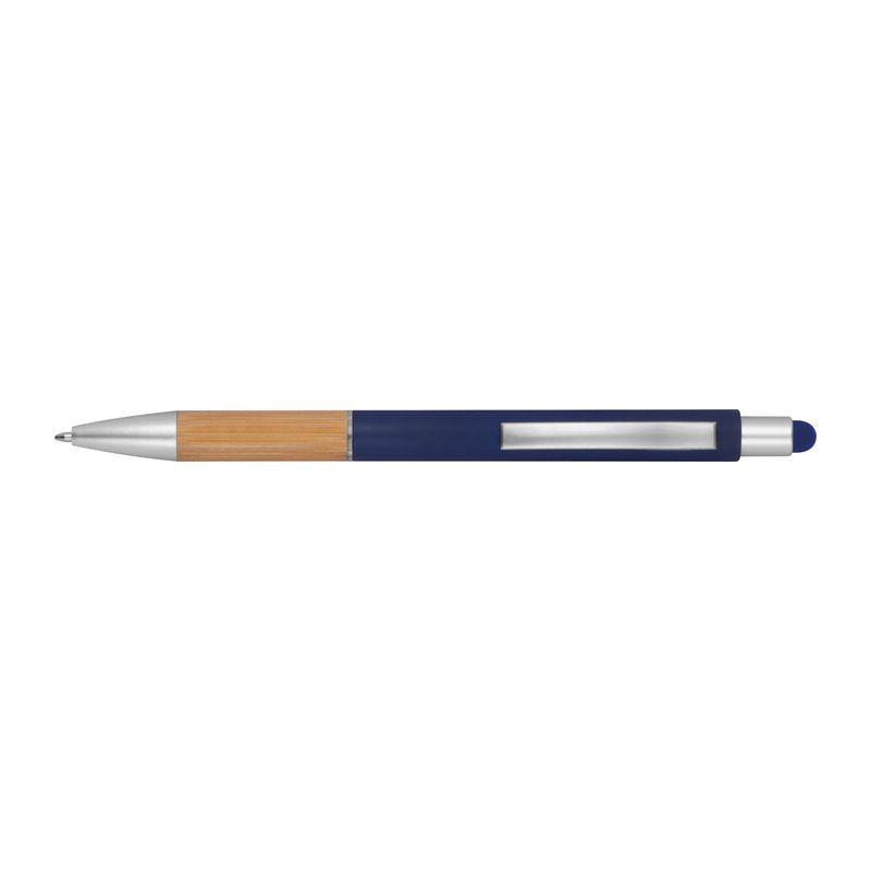 Прибираща се химикалка с бамбукова зона за захващане, сензорна функция и син пълнител.