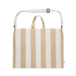 Плажната чанта LAGUNA е изработена от 280 gr/m² рециклиран памук (80%) и рециклиран полиестер (20%), с райе и вътрешен джоб. Тя има къси дръжки и една голяма регулируема презрамка за удобство при носене.
