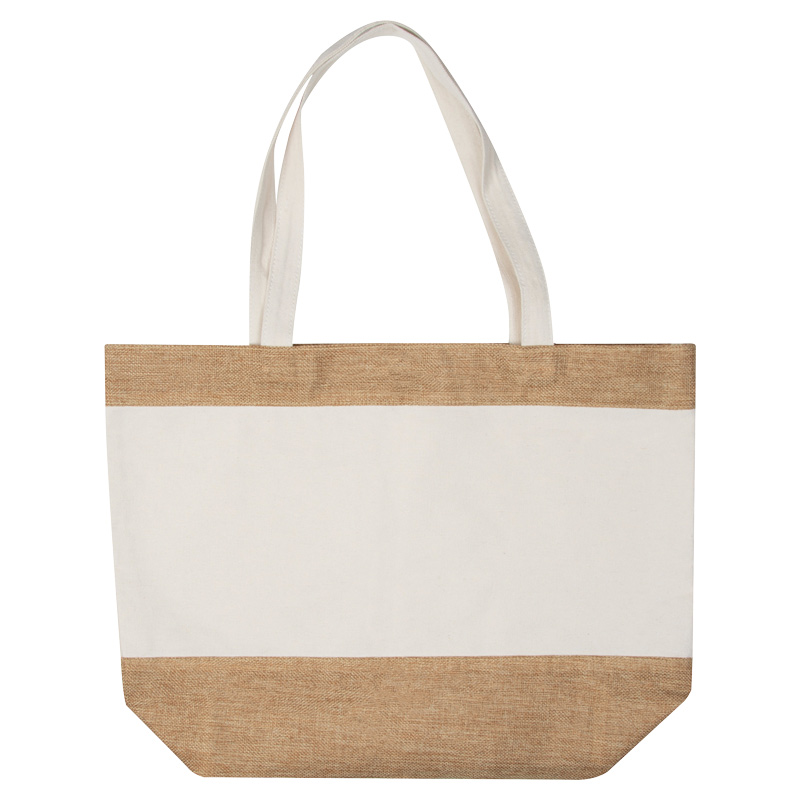 Екологична плажна чанта, изработена от памук и юта с дълги дръжки, която предлага достатъчно място за всичко необходимо за вашето плажно пътуване.