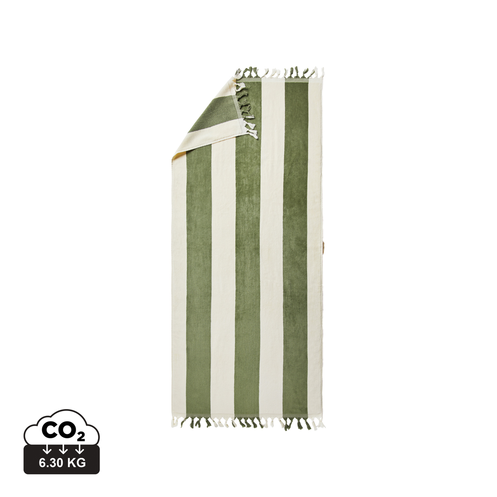 Луксозна памучна плажна кърпа с пискюли в късите краища, за дни на плажа или басейна. Нашите плажни кърпи са произведени в Индия със 100% органично отглеждан памук и са с дебелина 450 g/m2.