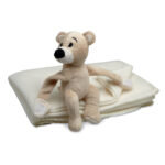 Отличава се с иновативния дизайн, който позволява на мечето да държи одеялото, като го фиксира с ръцете си.