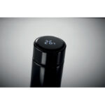 Изолираща вакуумна бутилка от неръждаема стомана с двойна стена. Разполага с LED сензорен термометър, вграден в горната част на капака, и инфузьор за чай вътре. Включена е 1 сменяема батерия CR 2450. Устойчив на течове. Вместимост: 450 мл. Без течове.