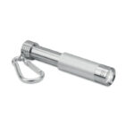 Мини алуминиев и ABS LED ключодържател. Логото може да бъде лазерно гравирано и светлината ще осветява логото. Включени са 4 батерии LR44.
