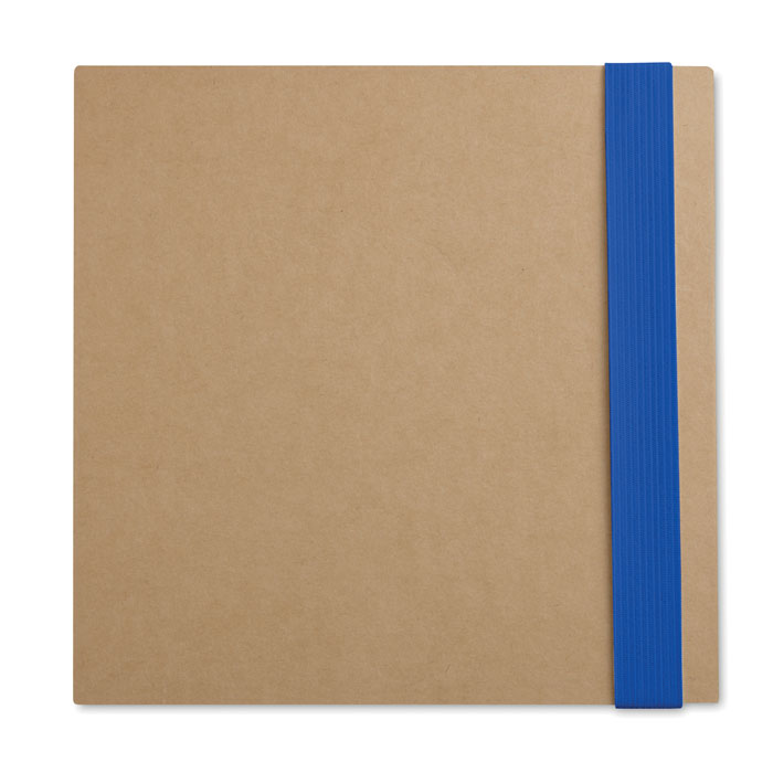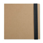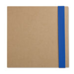 Тефтер с рециклирана картонена корица. 100 обикновени листа. Подложка за бележки от 3 части. Големи и средни жълти блокове за лепкави бележки и маркери за страници в 5 различни цвята. Подходяща химикалка с бутон и хартиен барел. Поставка за химикалки. Закопчаване с еластична лента.