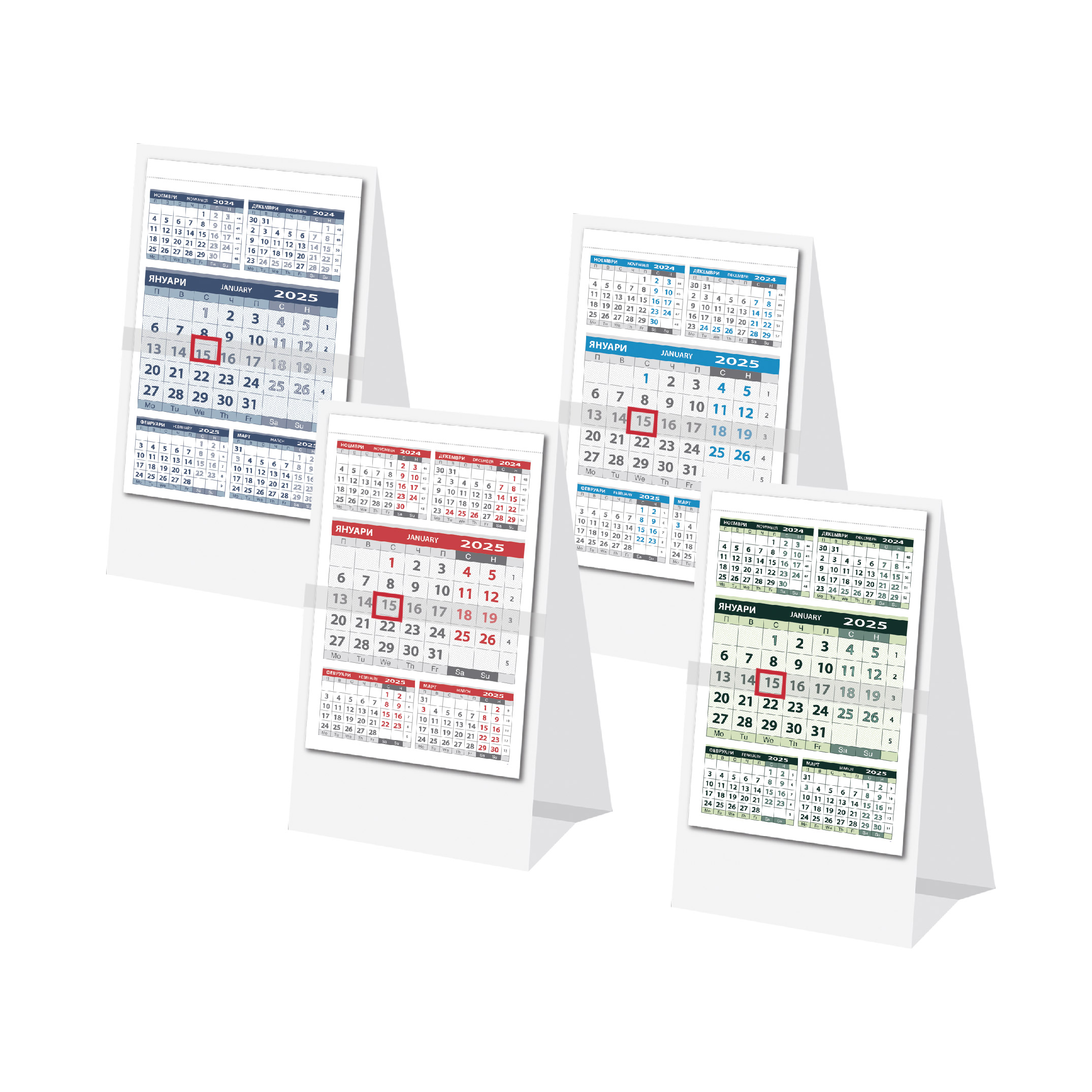 Идеален за печатници и рекламни агенции, този работен календар предоставя възможност за персонализиране. Основата е изработена от бял картон Зенит (295 г/м²), щанцована и бигована, което я прави готова за отпечатване на лого или дизайн. Тялото включва 12 листа на офсетова хартия (70 г/м²), с декоративна шапка и перфорация за лесно откъсване, налични в син, светлосин, червен и зелен. Компактният дизайн (100 х 180 х 70 мм) включва прозорче за датите, което е част от цената.