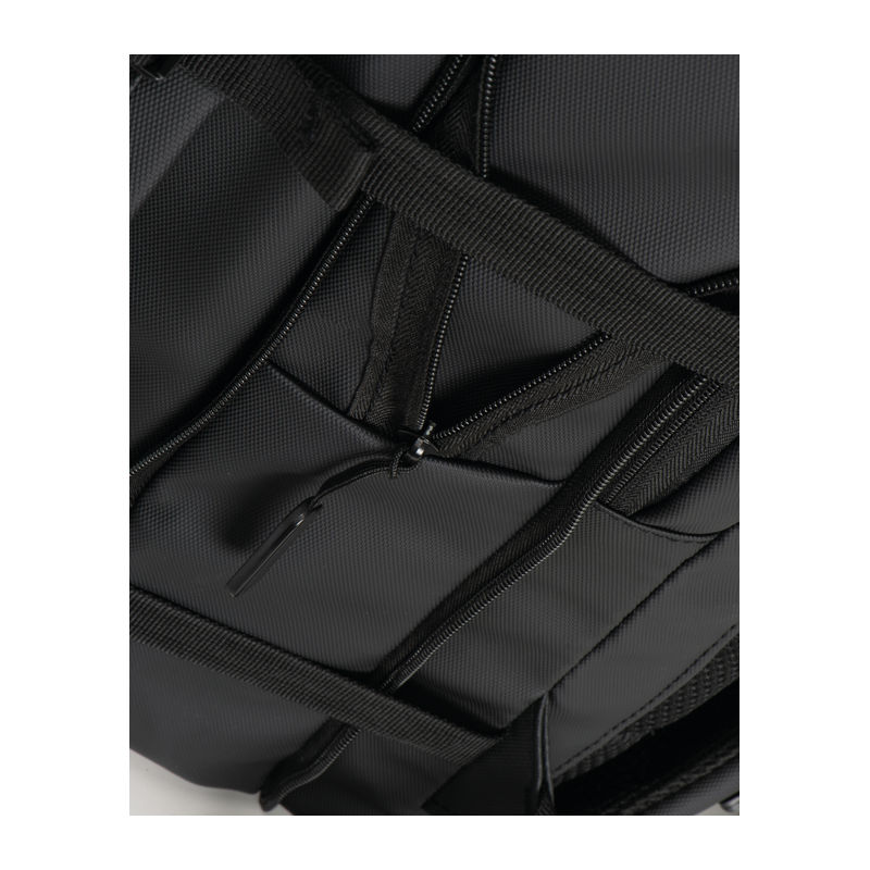 Водоустойчивият дизайн включва отделение за лаптоп със затваряне, предпазен заден джоб, страничен джоб с мрежа и отделение за мръсотия в долната част.