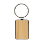 Ключодържател с правоъгълна форма, изработен от рециклирана цинкова сплав по стандарт RCS и бамбук.