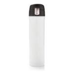 Тази страхотна вакуумна колба от неръждаема стомана с двойна стена поддържа напитката ви топла до 5 часа или охладена до 15 часа. Капакът се заключва и следователно избягва всякакъв риск от изтичане или разливане. Капакът лесно се поддържа чист за оптимална хигиена и може да се мие в съдомиялна машина. Уникалният дизайн на колбата ви позволява да пиете удобно и безопасно с една ръка директно от колбата. Размерът на колбата е подходящ за поставяне във всеки автомобилен държач за напитки. Изработено от сертифицирани рециклирани материали RCS (Recycled Claim Standard). RCS сертификацията гарантира напълно сертифицирана верига за доставки на рециклирани материали. Общо рециклирано съдържание: 76% въз основа на общото тегло на артикула. Без BPA. Вместимост 450мл. Включително FSC®-сертифицирана крафт опаковка.