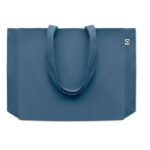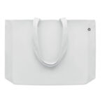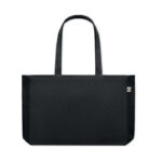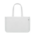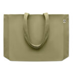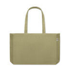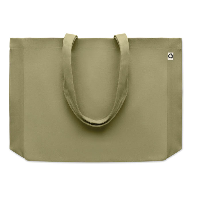 Пазарската или плажната торба е изработена от рециклирано платно, което комбинира 50% памук и 50% рециклиран памук.