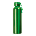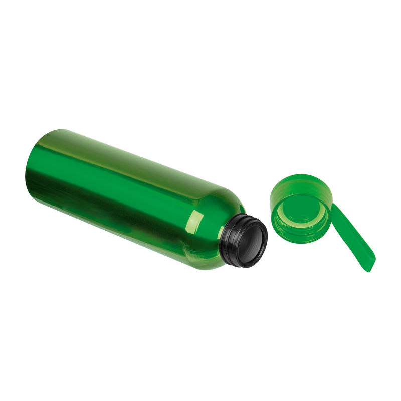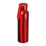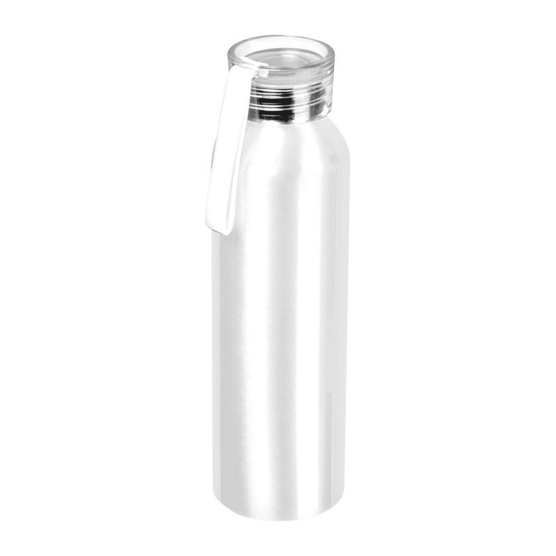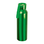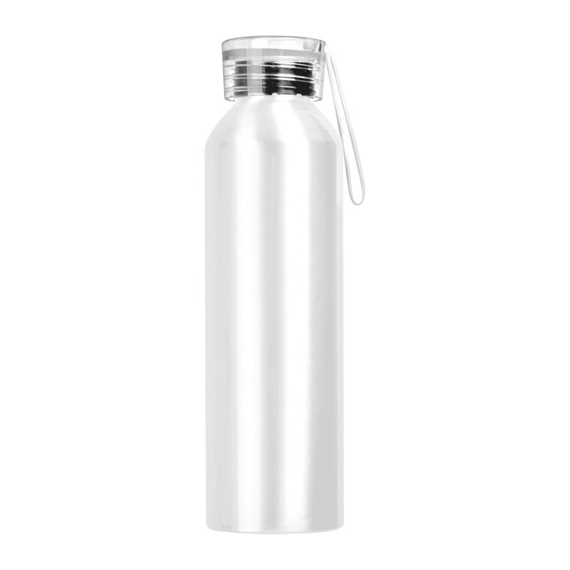 Рециклирана алуминиева бутилка за пиене с прозрачен цветен капак и вместимост 600 ml. Екологичен и практичен за движение.