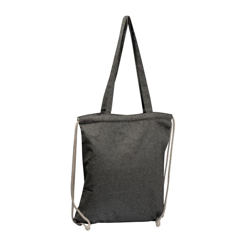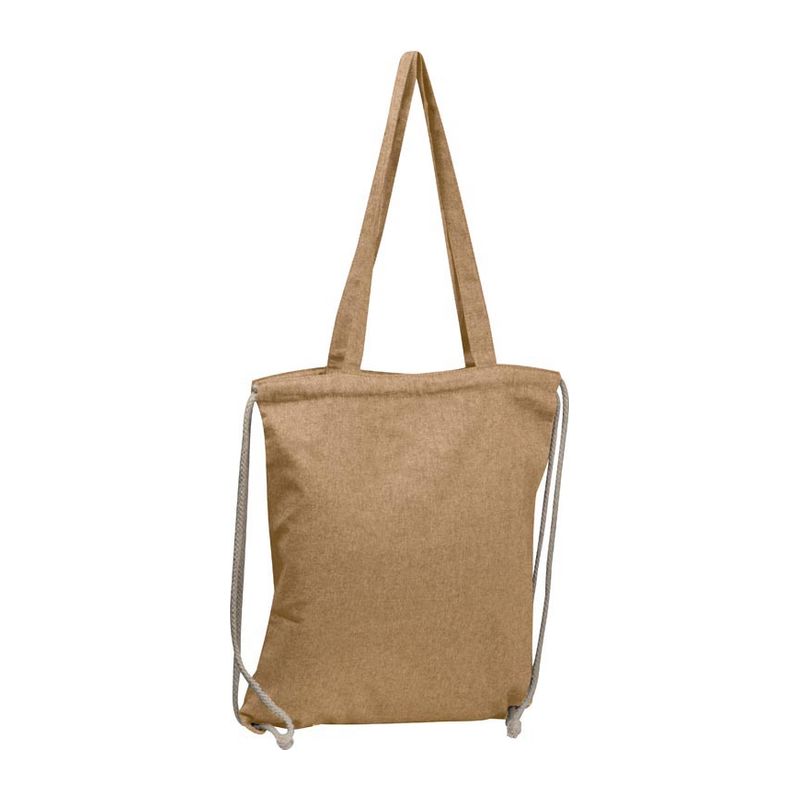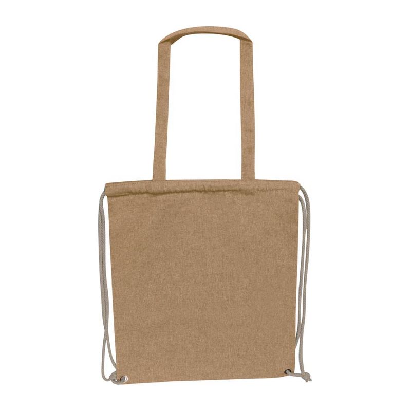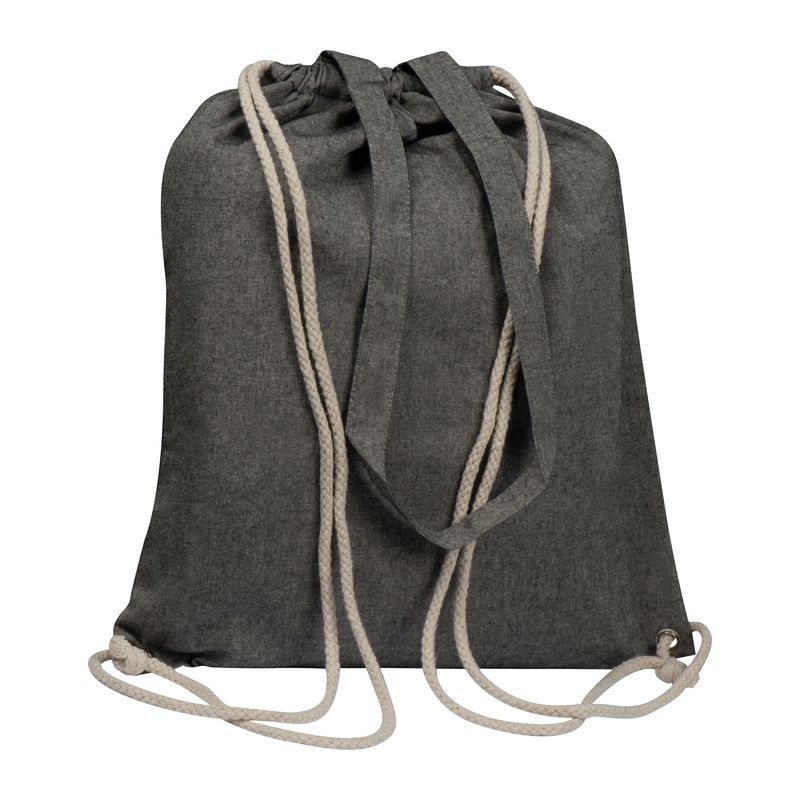 Oeko-Tex® STANDARD 100 сертифицирана гимнастична торба от рециклиран памук с дълги дръжки за носене и допълнителни въжета.