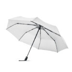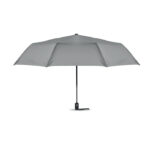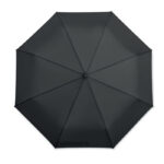 27-инчов 3-сгъваем ветроустойчив чадър с автоматично отваряне/затваряне. 190T pongee материал черен стоманен вал. Ребра от фибростъкло, 1 част черно покритие вътрешна рамка. Черна PP дръжка с копче. С подходяща торбичка.