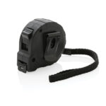 3-метрова ролетка, направена с RCS (Recycled Claim Standard) сертифициран рециклиран ABS. Общо рециклирано съдържание: 17% на базата на общото тегло на артикула. RCS сертификацията гарантира напълно сертифицирана верига за доставки на рециклирани материали. С луксозна TRP гумена ръкохватка за гладък захват. С бутон за освобождаване/заключване и допълнителен бутон за задържане отстрани. С 16 мм едностранна ролетка, жълта с черна кука от въглеродна стомана. С полиестерна каишка за китка. Опаковани в FSC® микс крафт опаковка