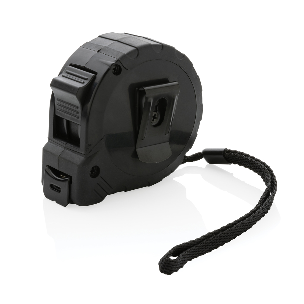 5-метрова ролетка, направена с RCS (Recycled Claim Standard) сертифициран рециклиран ABS. Общо рециклирано съдържание: 15% на базата на общото тегло на артикула. RCS сертификацията гарантира напълно сертифицирана верига за доставки на рециклирани материали. С луксозна гумена дръжка TRP за гладко задържане. С бутон за освобождаване/заключване и допълнителен бутон за задържане отстрани. С 19 мм едностранна ролетка, жълта с черна кука от въглеродна стомана. С полиестерна каишка за китка. Опаковани в FSC® микс крафт опаковка
